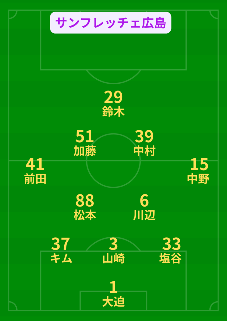 今季の広島は、サイドで持っても簡単にクロスを上げないのが特徴ですね。中野選手が内側に絞り、そのスペースを中村選手が使う形もこの試合で多く見られました。
